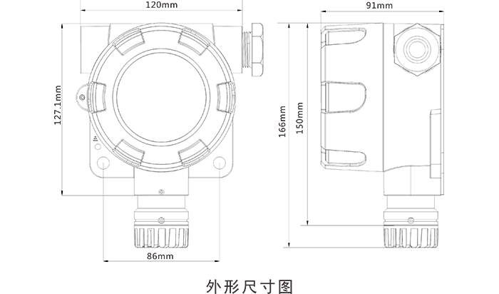 报警方式 | LED光报警,(可选配爆声光报警器) |